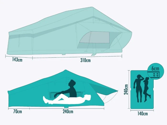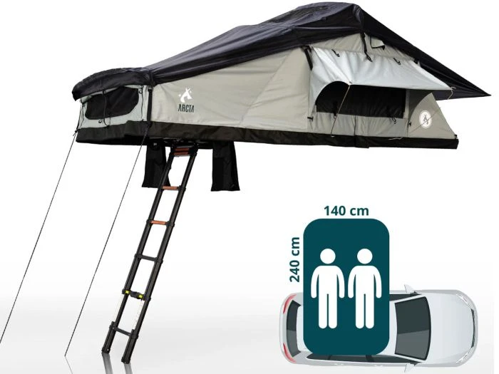 Que vous soyez un baroudeur chevronné ou simplement amateur de roadtrips, cette tente est faite pour vous. Son système de pliage rapide la rend facile à installer comme à replier. Grâce à l’échelle intégrée, l’ouverture et la fermeture de la tente se font sans effort. L’effet de levier de l’échelle permet même aux personnes ayant moins de force dans les bras de la manipuler aisément.