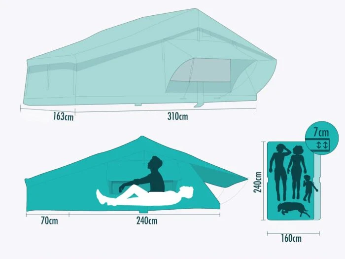 L’ouverture et la fermeture de la tente se font en quelques secondes grâce à la structure pliable intuitive et à l’échelle télescopique intégrée. La conception ingénieuse permet une manipulation fluide, même sans force physique importante.