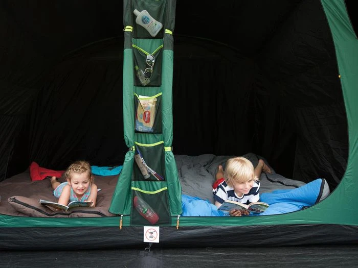 Au camping, vous êtes souvent réveillé tôt par le soleil qui brille à travers la toile de votre tente. Vous ne le souhaitez plus, cette Coleman Mackenzie 6 BlackOut est la tente idéale! Grâce à la chambre spéciale occultante, vous pouvez tranquillement continuer à rêver.