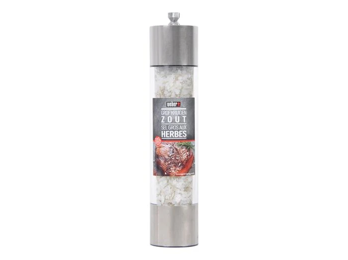 Le gros sel aux herbes Weber est livré dans un moulin à herbes rechargeable et pratique.