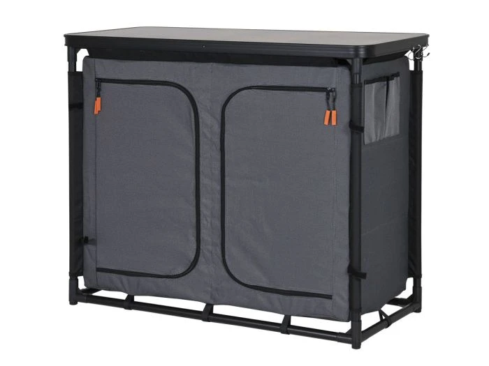 Cette armoire de camping dispose de six compartiments de rangement spacieux dans lesquels vous pouvez ranger votre équipement de camping de manière organisée. L’arrière de l’armoire est équipé d’un filet en maille qui assure une bonne ventilation de l’armoire.