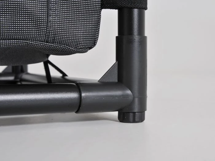 L’armoire est dotée de quatre pieds réglables afin que vous puissiez toujours positionner l’armoire à niveau sur une surface inégale. Le plateau est en MDF et fini avec un bord en aluminium. L’armoire est facile à démonter. Un sac de transport est fourni.