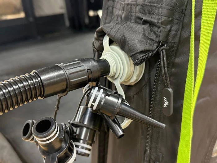 L’utilisation du Cyclone Compact est ultra simple. Fixe la pompe au tuyau d’air de ta tente avec l’adaptateur approprié. Appuie ensuite sur le bouton « PSI/BAR » pour sélectionner l’unité souhaitée. Ensuite, règle la pression correcte avec les boutons « + » et « – ». Appuie sur le bouton d’alimentation et la pompe commence à fonctionner. Une fois la pression définie atteinte, la pompe s’arrête automatiquement. Le Cyclone Compact fonctionne en deux phases. Lors de la première phase, il souffle autant d’air que possible dans les chambres à basse pression. Une fois que le capteur intégré détecte que la pression n’augmente plus, il passe automatiquement à la deuxième phase. Pendant cette dernière, la pression augmente et le compresseur démarre jusqu’à atteindre la pression souhaitée.