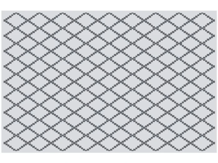 Ce tapis robuste au design moderne est résistant à la saleté, à la moisissure, aux UV et est facile à nettoyer. Le tapis est fabriqué en polypropylène tissé avec un bord en polyester tout autour. La structure dense du tissage empêche les insectes d’entrer par le dessous.