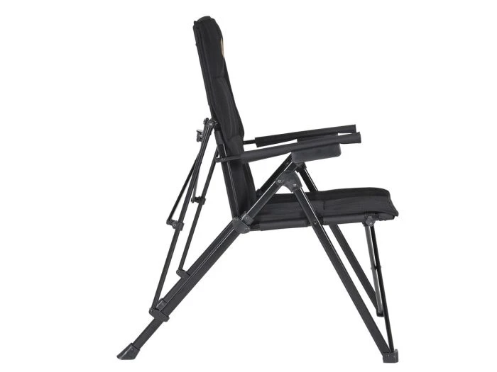 La structure de la chaise est en acier avec un revêtement en polyester rembourré. Pour plus de commodité, les accoudoirs sont dotés d’un rembourrage moelleux. La chaise peut supporter jusqu’à 120 kg et est livrée avec un sac de transport pratique pour un transport facile.