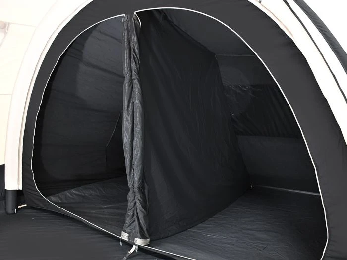Elle est équipée d’un tapis de sol cuvette fixe, solidement cousu au double toit sur toute la surface de la tente. Cette caractéristique empêche l’eau de pénétrer à l’intérieur en cas de pluie, assurant ainsi que vos pieds et vos affaires restent bien au sec. Ce tapis de sol cuvette fixe a pour autre avantage d’empêcher les insectes et les nuisibles de pénétrer dans la tente. À l’entrée de la tente, le tapis de sol est rabattable pour écarter tout risque de trébuchement.