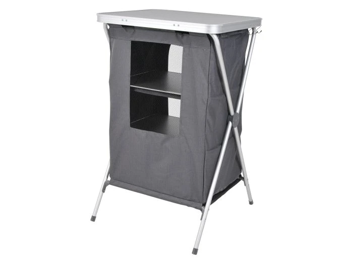 L’Obelink Travel Easy Luxe a trois compartiments de rangement spacieux dans lesquels vous pouvez ranger votre équipement de camping. L’arrière est équipé de mesh afin de bien ventiler l’armoire. Les deux côtés ont trois crochets de suspension, parfaits pour accrocher votre serviette ou votre veste polaire. Le plateau est fabriqué en MDF et pourvu d’un bord en aluminium. Après utilisation, vous pouvez ranger le meuble de camping dans le sac de rangement fourni.