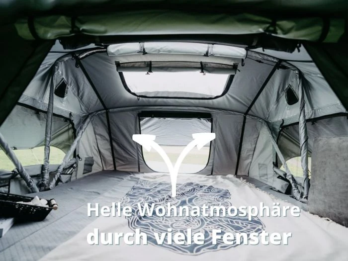 La tente de toit est fabriquée en polycoton Rip-Stop de 280 grammes avec un Rainfly en polyester Rip-Stop 600D (toit). Les deux ont une colonne d’eau d’au moins 3 000 mm, ce qui rend la tente résistante à presque toutes les conditions météorologiques. Le Viator est équipé de grandes ouvertures de ventilation avec moustiquaire tout autour. Les deux fenêtres latérales sont équipées d’un auvent. Cela fournit un abri supplémentaire et empêche la pluie. Grâce au porche couvert, vous bénéficiez d’un abri supplémentaire et de plus d’intimité.