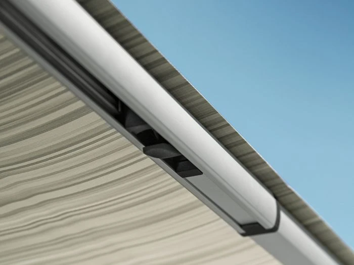 Vous n’avez pas besoin d’adaptateurs pour un store étui. Ceux-ci s’insèrent directement dans le rail de la caravane avec une fixation par jonc.