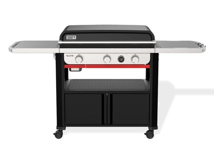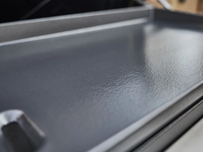 Le Weber 76 cm Plancha peut atteindre une température de 330 °C et chauffe la plaque de manière uniforme d’un bord à l’autre, assurant une cuisson égale, où que l’aliment soit placé sur la plaque. La Plancha dispose de 3 brûleurs qui sont réglables séparément, permettant de cuisiner à 3 différentes températures en même temps. La plaque de cuisson émaillée en porcelaine antiadhésive facilite le retournement des hamburgers ou la grillade des légumes. Adaptée aux ustensiles métalliques, tu peux utiliser une grande spatule sans inquiétude.